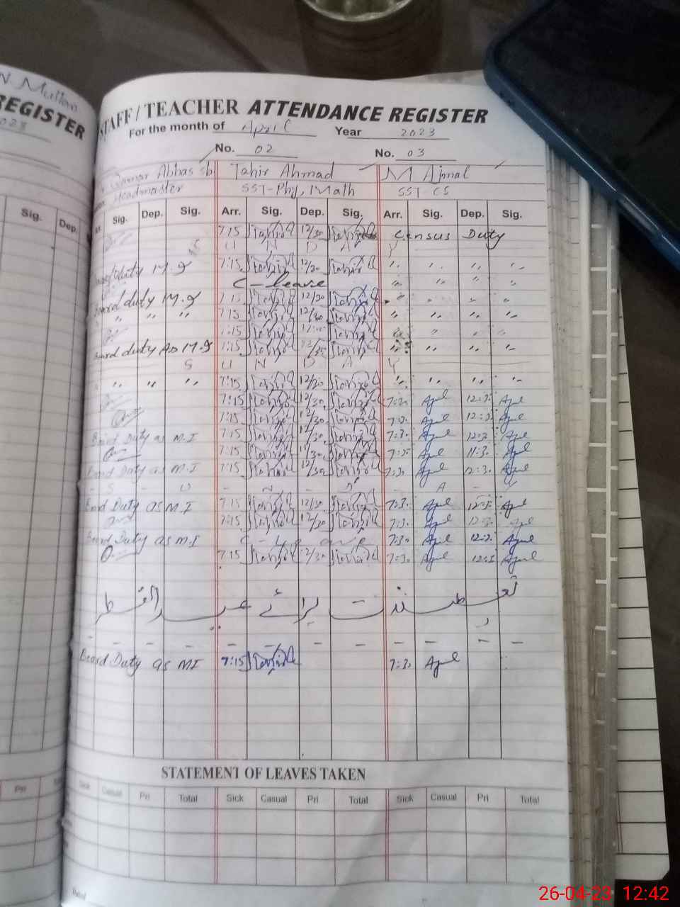 | 36**** | Qa**** Ab**** | HEADMASTER | Regular | 0 | 0 | 0 | 0 | 0 | 0 | 0 | 0 | 0 | Exam Duty |