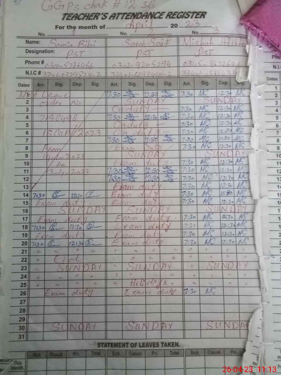 | 38**** | Sa**** Sa**** | PST | Regular | 0 | 0 | 0 | 0 | 0 | 0 | 0 | 0 | 0 | Exam Duty |