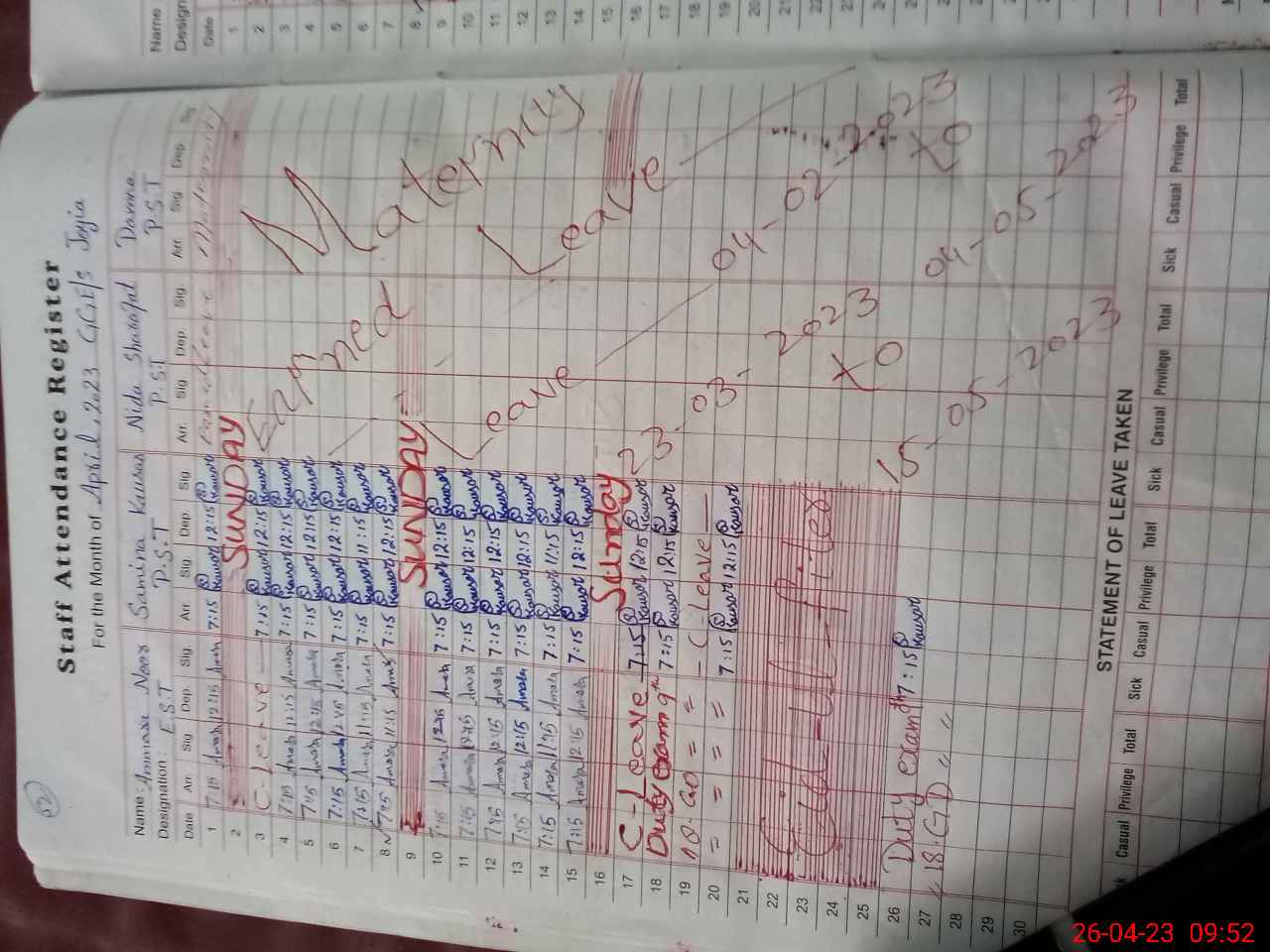 | 35**** | Da**** | PST | Regular | 31 | 0 | 0 | 0 | 0 | 0 | 0 | 31 | 0 | Maternity |