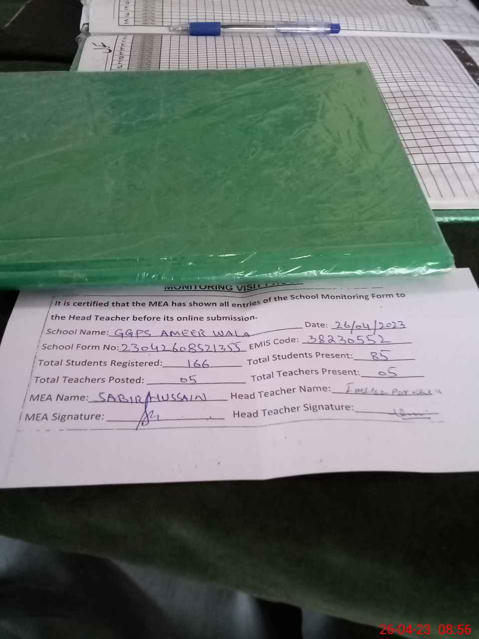 | EMIS Code: 38230552 | Name of School: GGPS AMIR WALA | |||