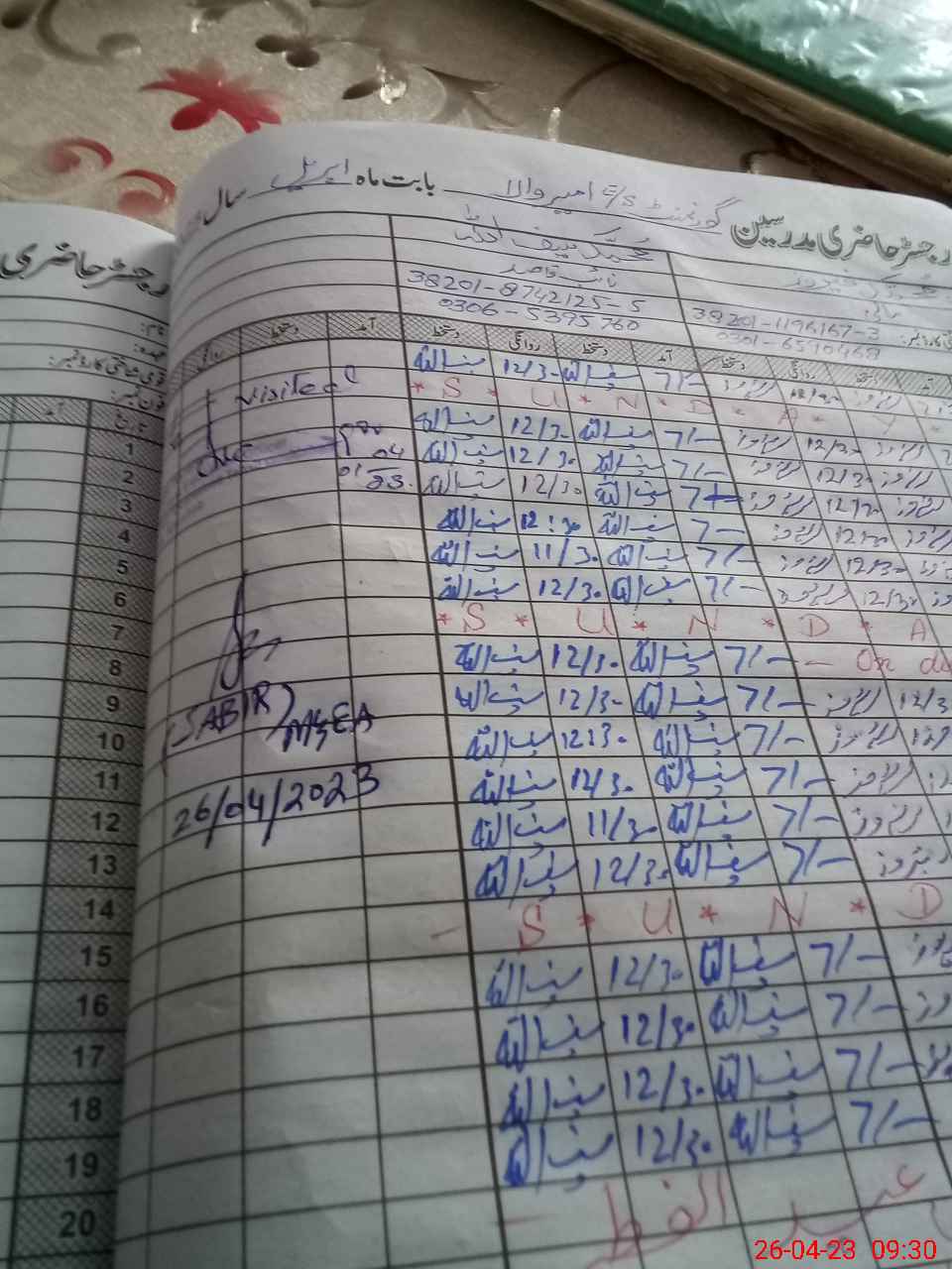 | Name: Mu**** Sa**** Designation: (School Headmaster's/Headmistress's) S S T Gen Phone/Cell Number: 03**** |