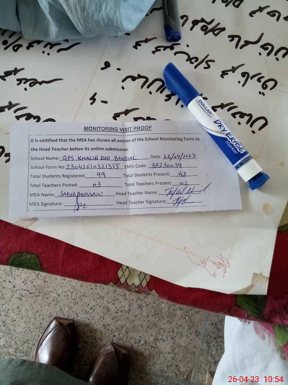 | EMIS Code: 38230039 | Name of School: GPS KHALIQ DAD BANDIAL | |||