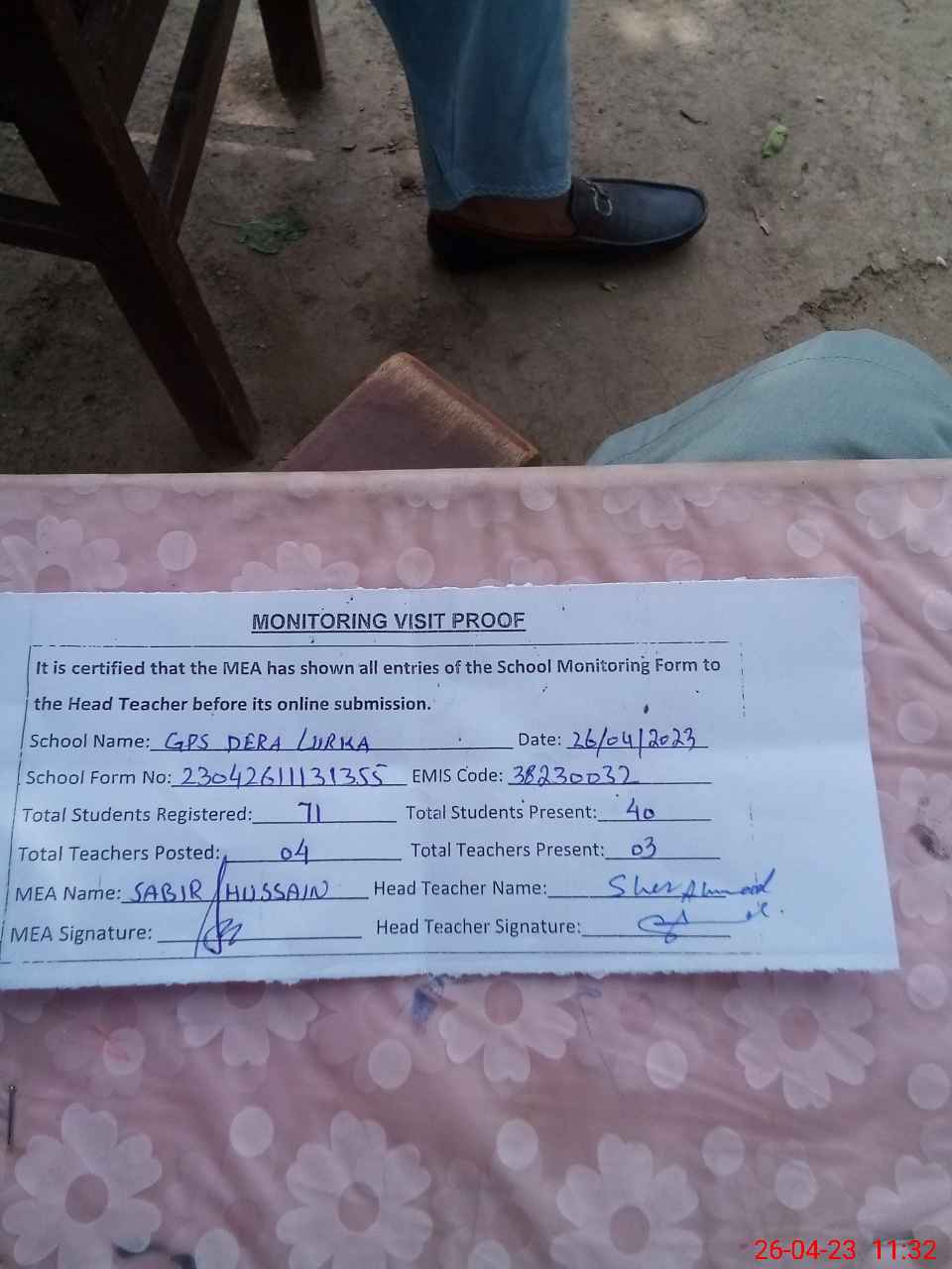 | EMIS Code: 38230032 | Name of School: GPS DERA LURKA | |||