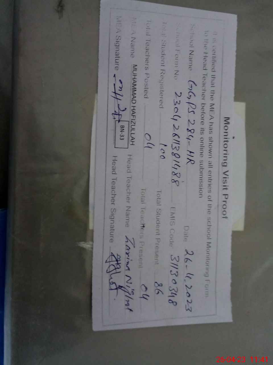 | EMIS Code: 31130348 | Name of School: GGPS CHAK NO 284 HR | |||