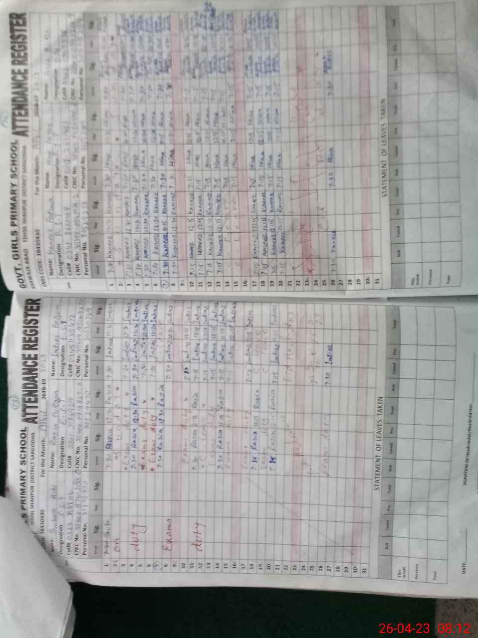 | 38**** | Ra**** Su**** | Regular | 2 | 0 | 0 | 0 | 0 | 0 | 0 | 0 | 2 | Exam Duty | |