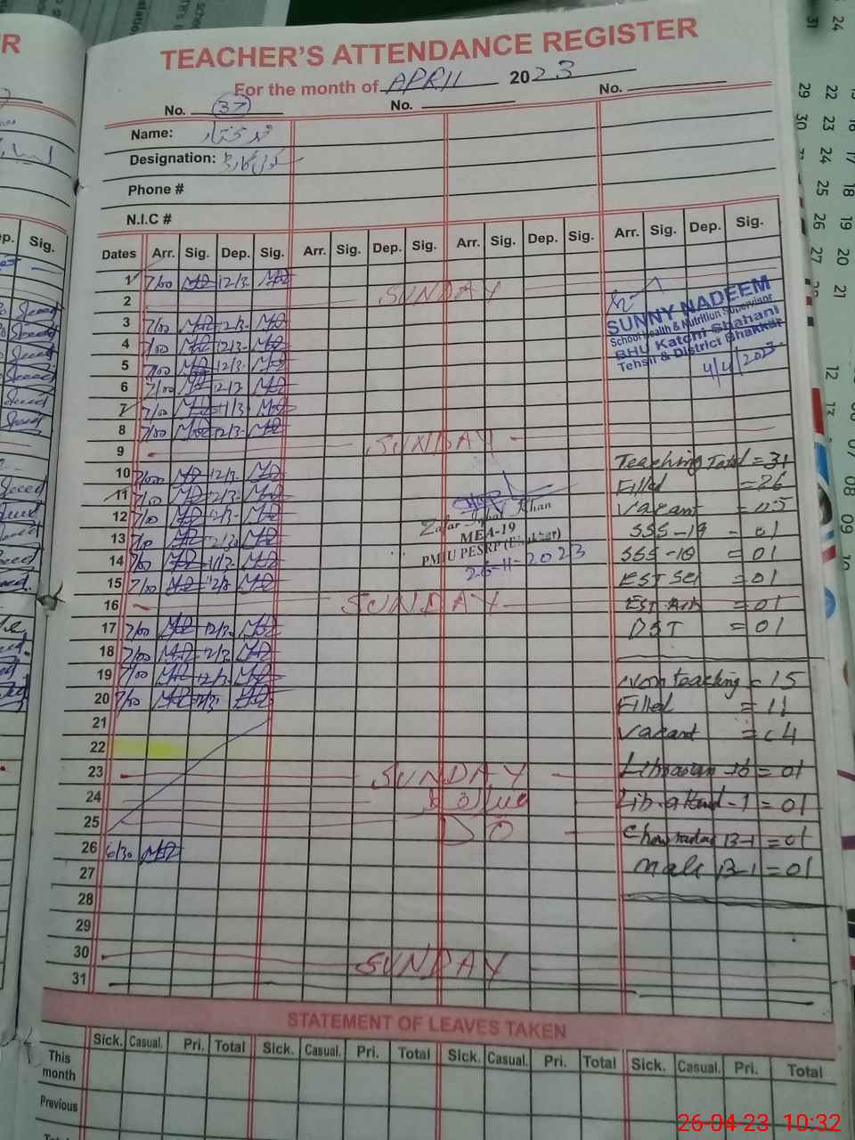 | 38**** | Mu**** Kh**** Pa**** | SSS | Regular | 0 | 0 | 0 | 0 | 0 | 0 | 0 | 0 | 0 | Exam Duty |
