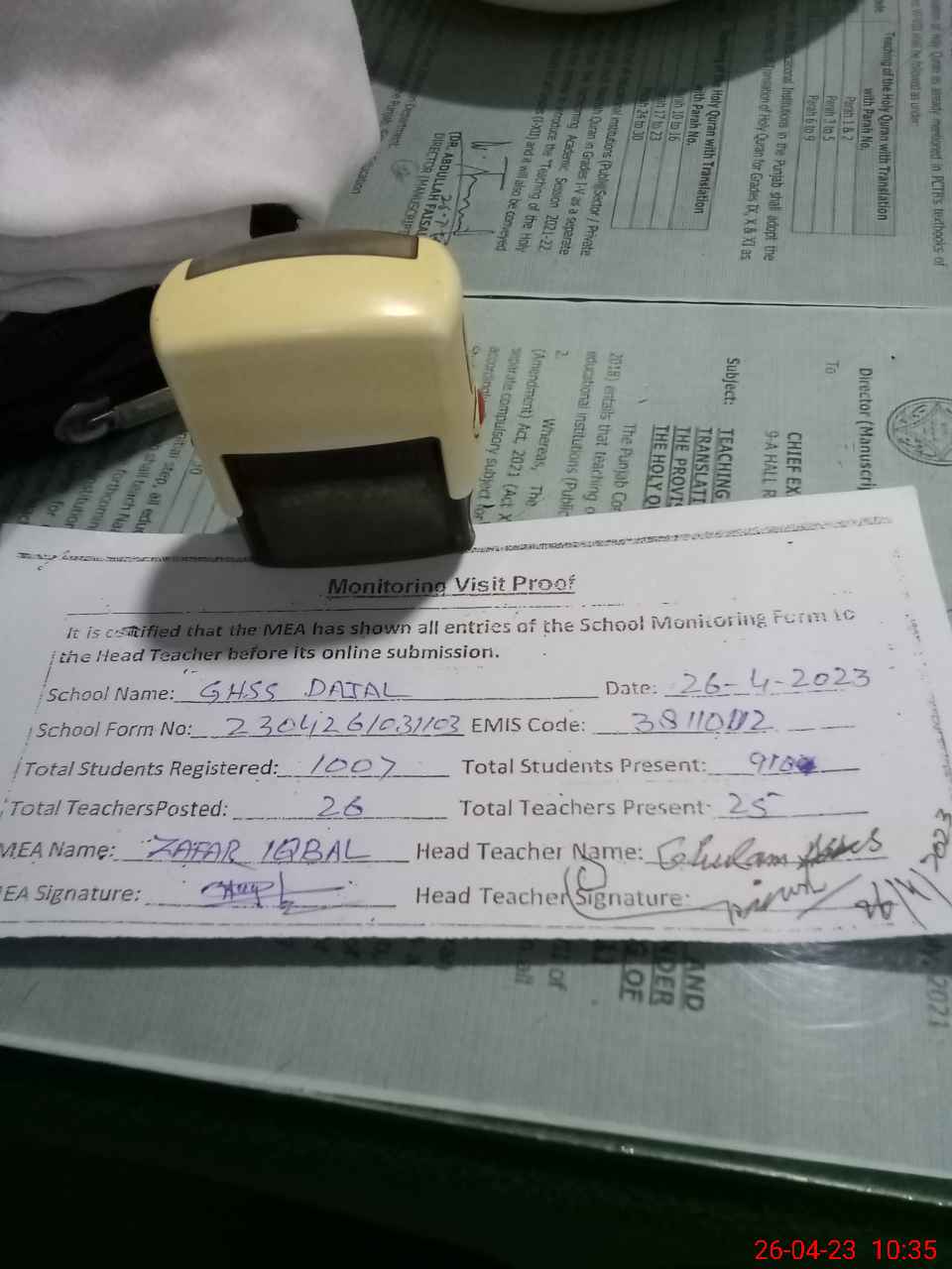 | Monitoring Date: 26-04-2023 | Start Time: 26-04-2023 09:49 AM | End Time: 26-04-2023 10:41 AM | Name of MEA: Za**** Iq**** Kh**** | |