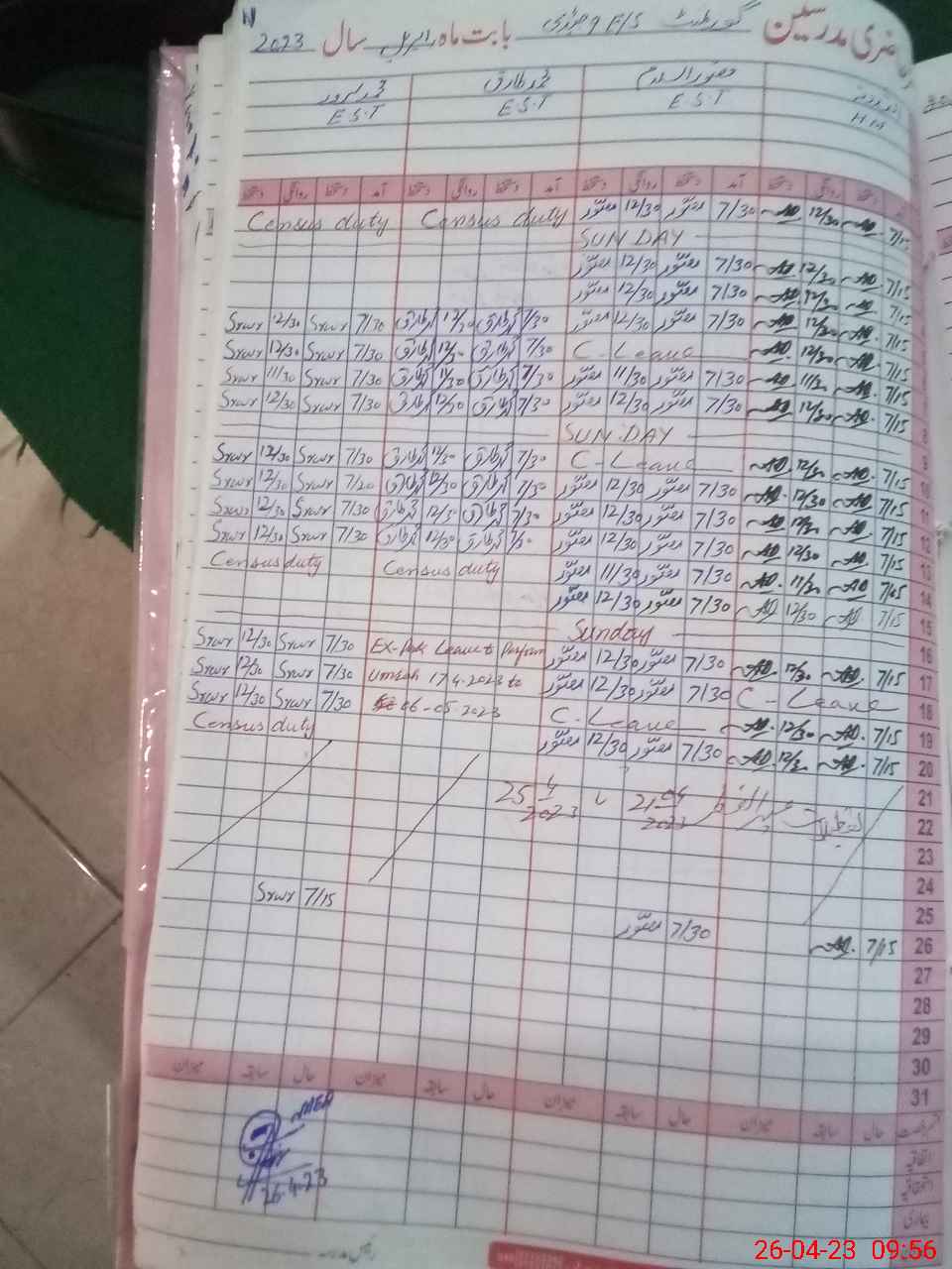 | Leave | Duty | Absent | Maternity | Medical | Ex- Pak |