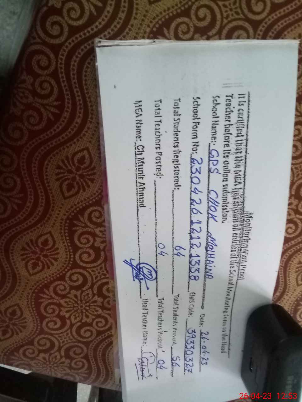 | Certified that this School was Inspected by the Undersigned MEA/DMO Today and the Information Stated Above is as Per Record. | |||||