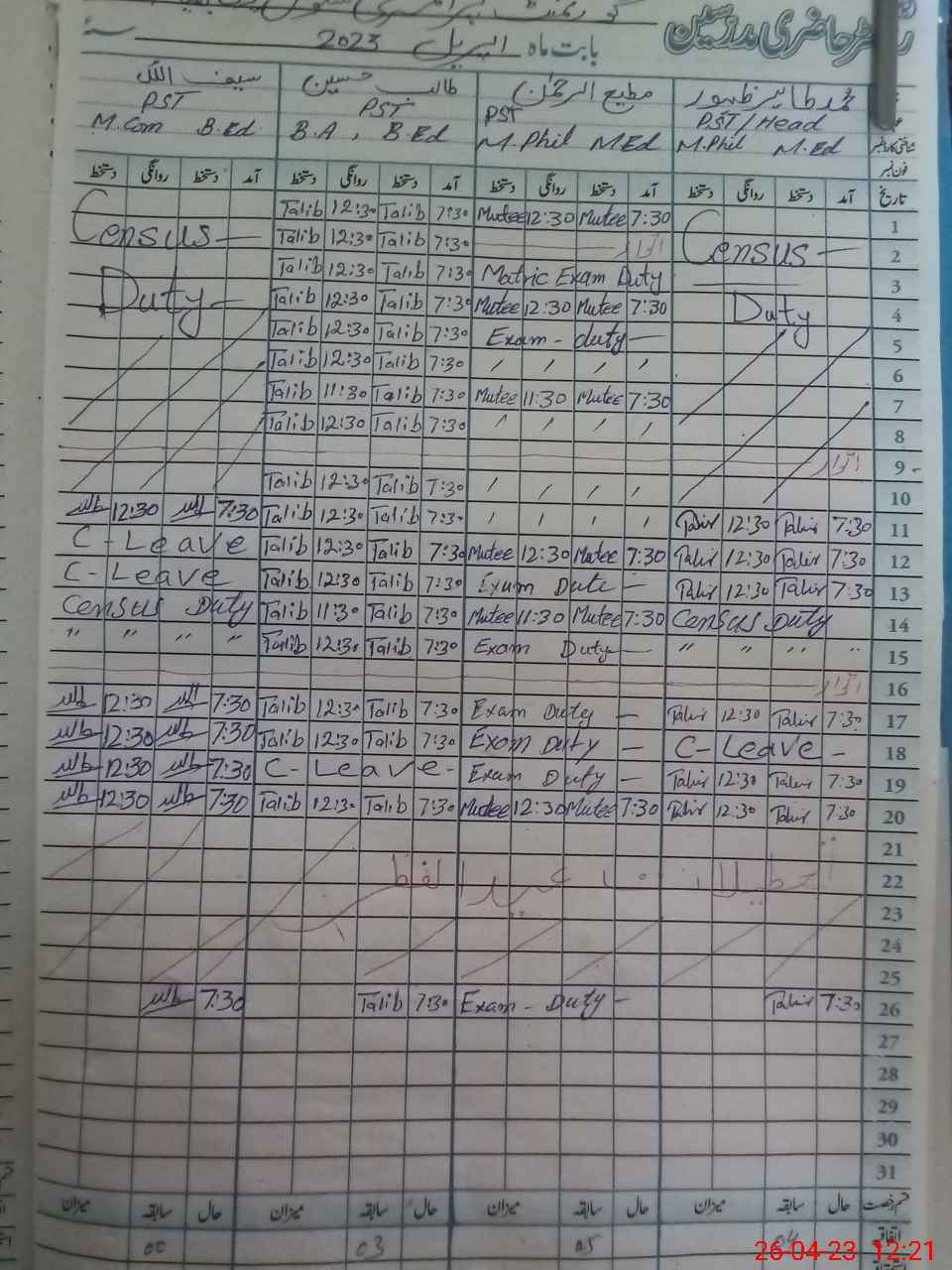 | 35**** | Mu**** UrRe**** | ESE | Contract | 0 | 0 | 0 | 0 | 0 | 0 | 0 | 0 | 0 | Exam Duty |