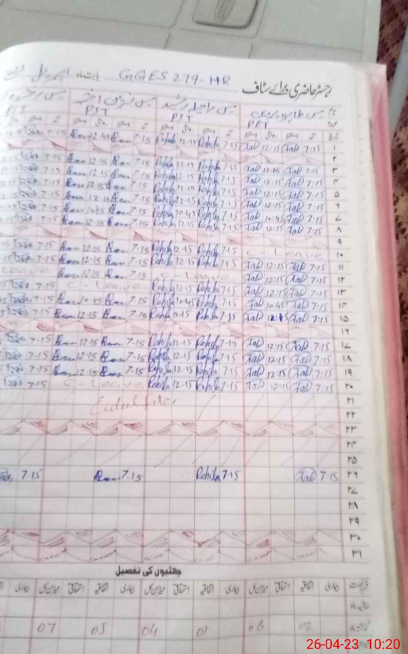 | 31**** | Az**** Ya**** | PST | Regular | 0 | 0 | 0 | 0 | 0 | 0 | 0 | 0 | 0 | Exam Duty |