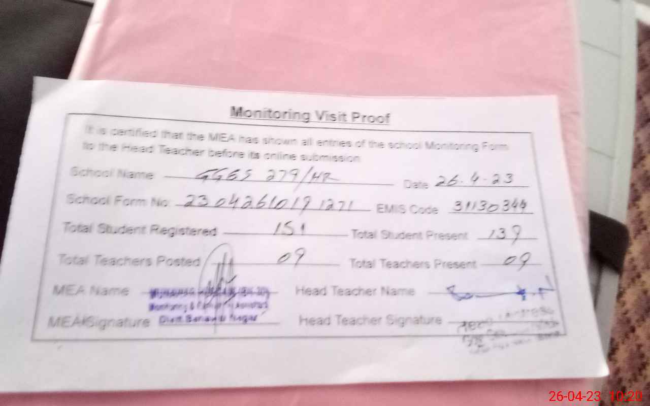 | EMIS Code: 31130344 | Name of School: GGES CHAK NO 279 HR | |||