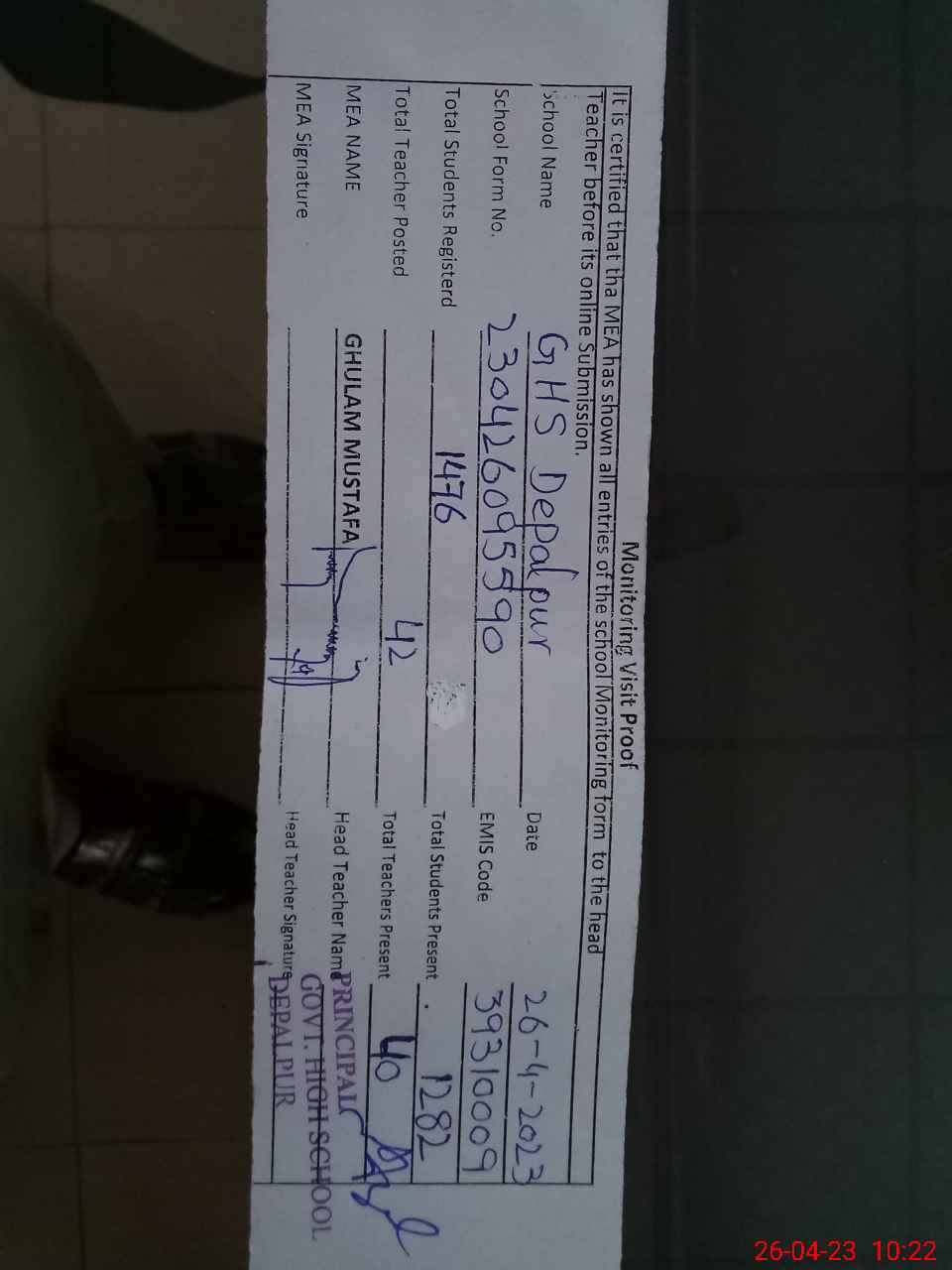 | EMIS Code: 39310009 | Name of School: GHS DEPALPUR | |||