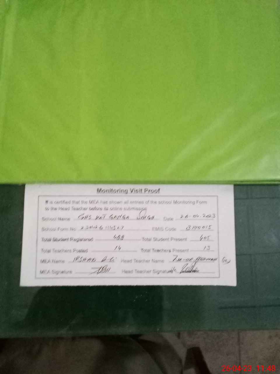 | EMIS Code: 31110015 | Name of School: GHS KAT GANGA SINGH | |||