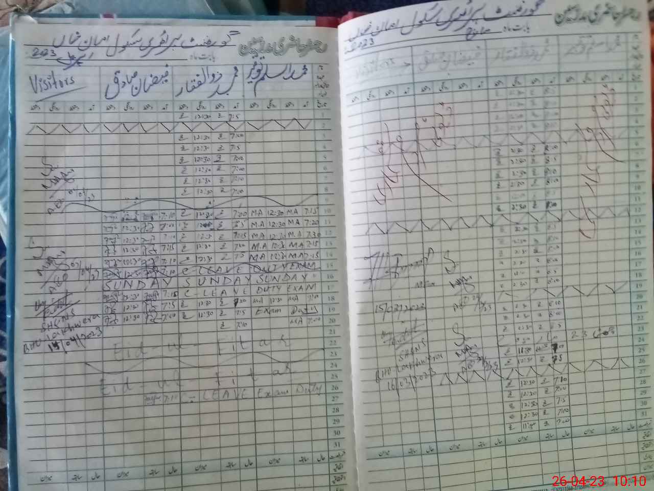 | School Visited by School Health & Nutrition Supervisor (No. of Visits) | 1 | Name1: | Umer Draz | Name2: | Nil |