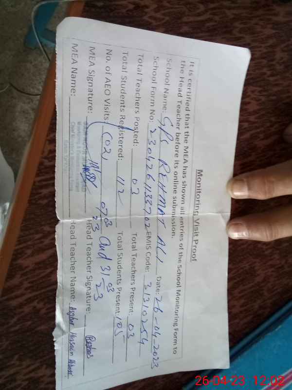 | EMIS Code: 31310254 | Name of School: GPS RAHMAT ALI | |||
