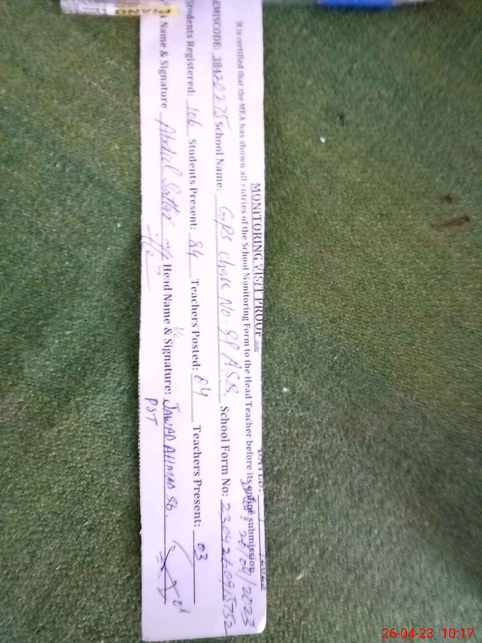 | Attendance Register | Head Teacher | MEA with School | Visit Proof |