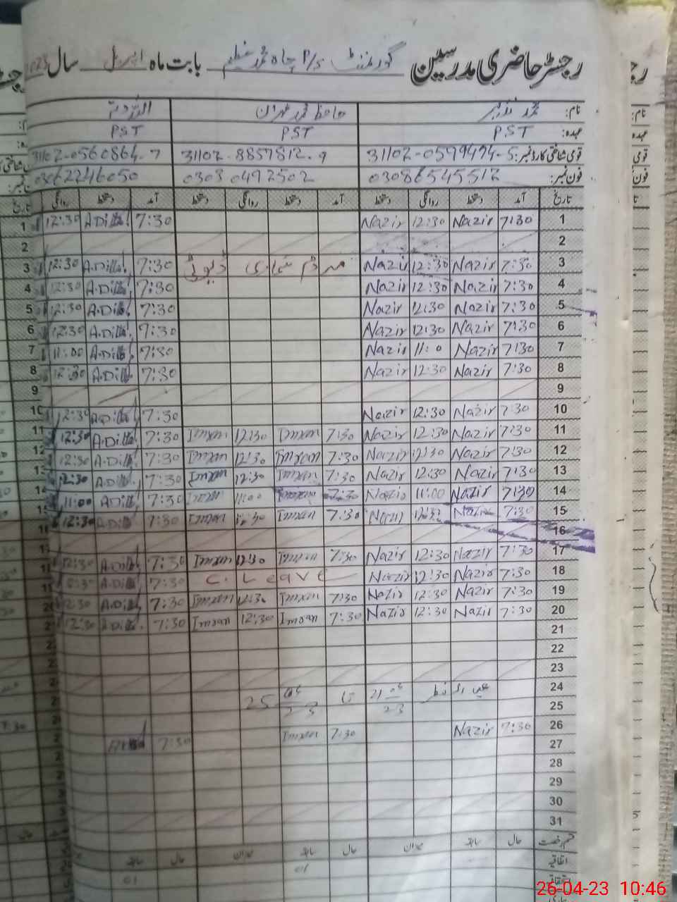 | Name: MU**** NA**** Designation: (School Headmaster's/Headmistress's) PST Phone/Cell Number: 03**** |