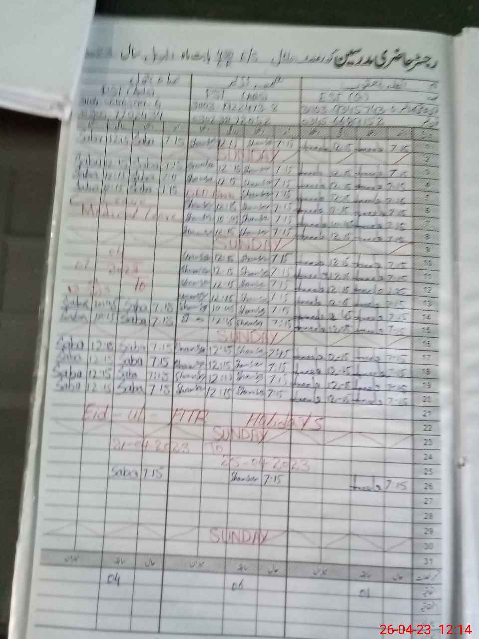 | Monitoring Date: 26-04-2023 | Start Time: 26-04-2023 11:45 AM | End Time: 26-04-2023 12:21 PM | Name of MEA: Zu**** Al**** BN**** | |
