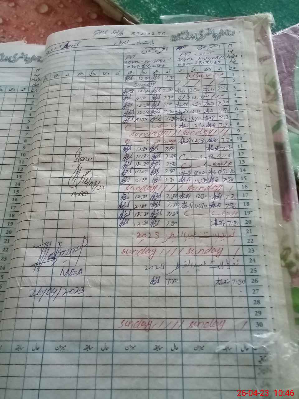 | Monitoring Date: 26-04-2023 | Start Time: 26-04-2023 10:25 AM | End Time: 26-04-2023 11:13 AM | Name of MEA: MU**** AS**** | |