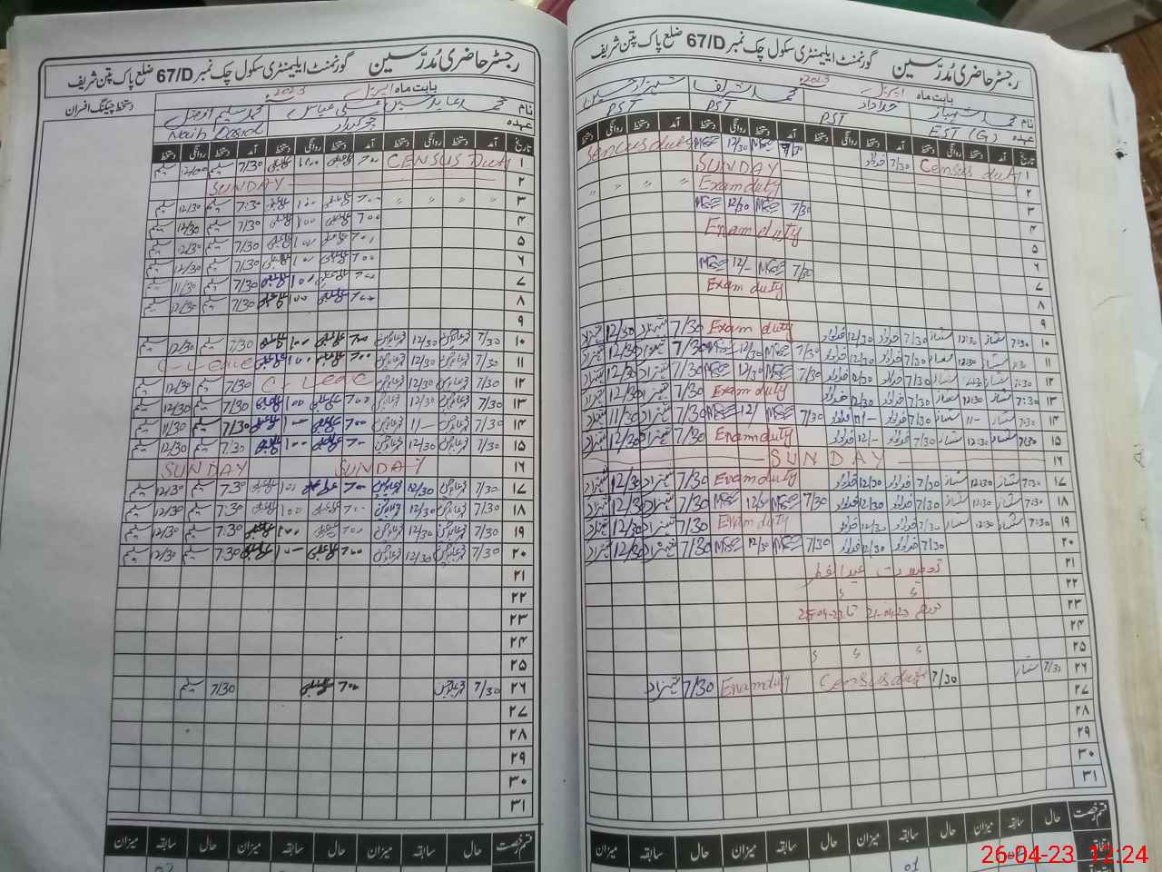 | 36**** | Mu**** Sh**** | PST | Regular | 0 | 0 | 0 | 0 | 0 | 0 | 0 | 0 | 0 | Exam Duty |