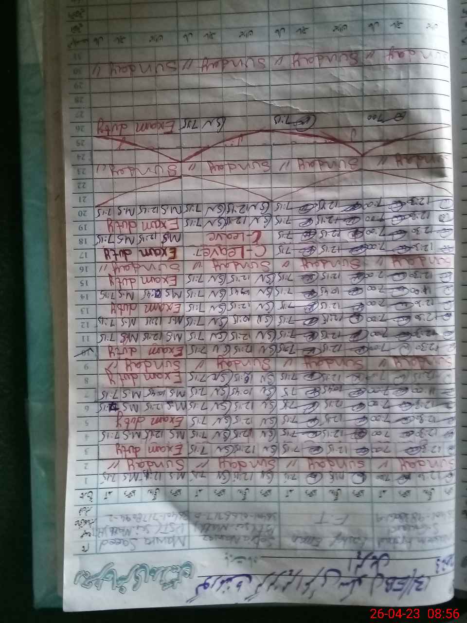 | 36**** | Ma**** Sa**** | Contract | 0 | 0 | 0 | 0 | 0 | 0 | 0 | 0 | 0 | Exam Duty | |