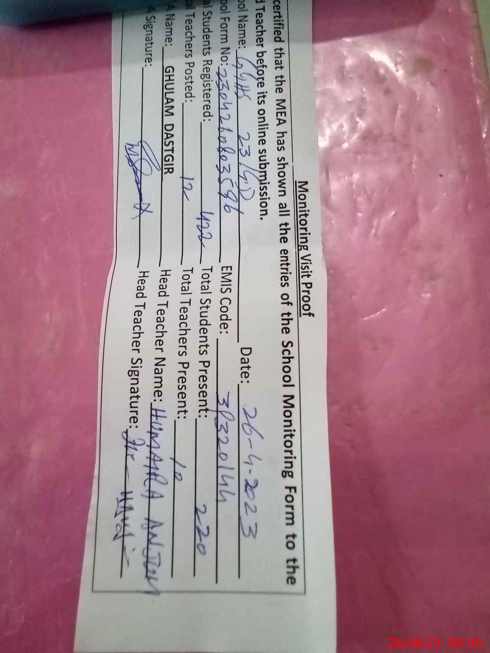 | EMIS Code: 39320144 | Name of School: GGHS 23-A/G.D | |||