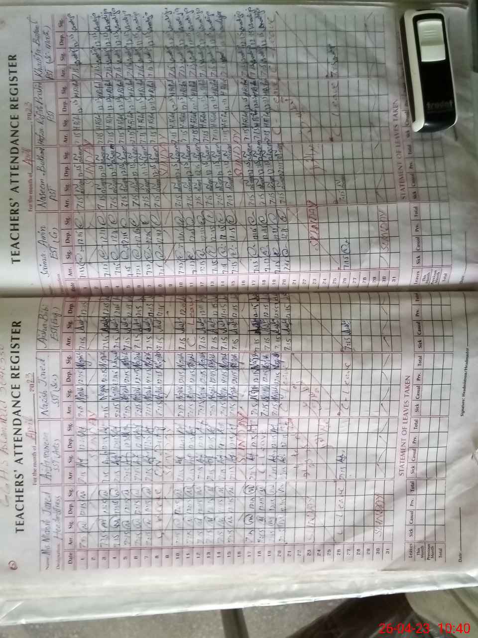 | Leave | Duty | Absent | Maternity | Medical | Ex- Pak |