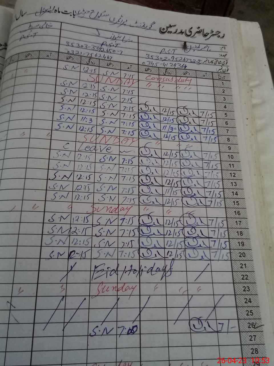 | Name: SH**** Designation: (School Headmaster's/Headmistress's) PST Phone/Cell Number: 03**** |
