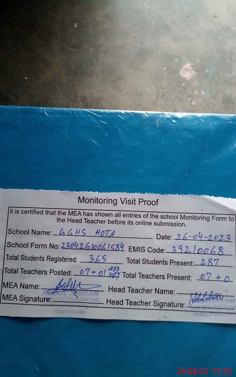 | EMIS Code: 39210068 | Name of School: GGHS HOTA | |||