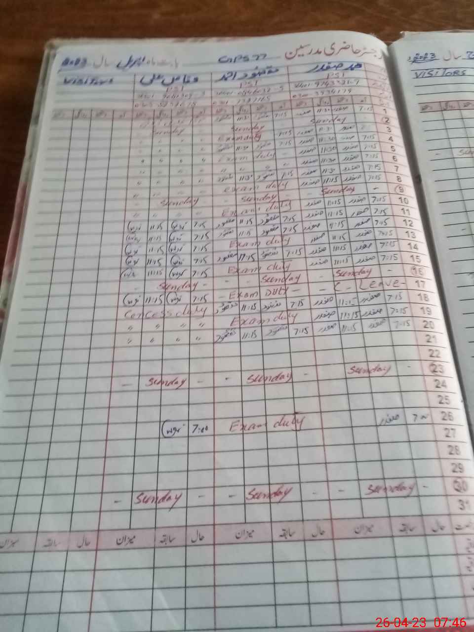 | Name: MA**** AH**** Designation: (School Headmaster's/Headmistress's) PST Phone/Cell Number: 03**** |