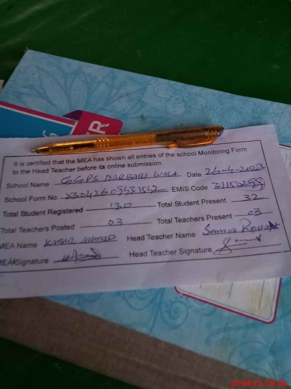 | EMIS Code: 31150299 | Name of School: GMPS DARBARI WALA | |||