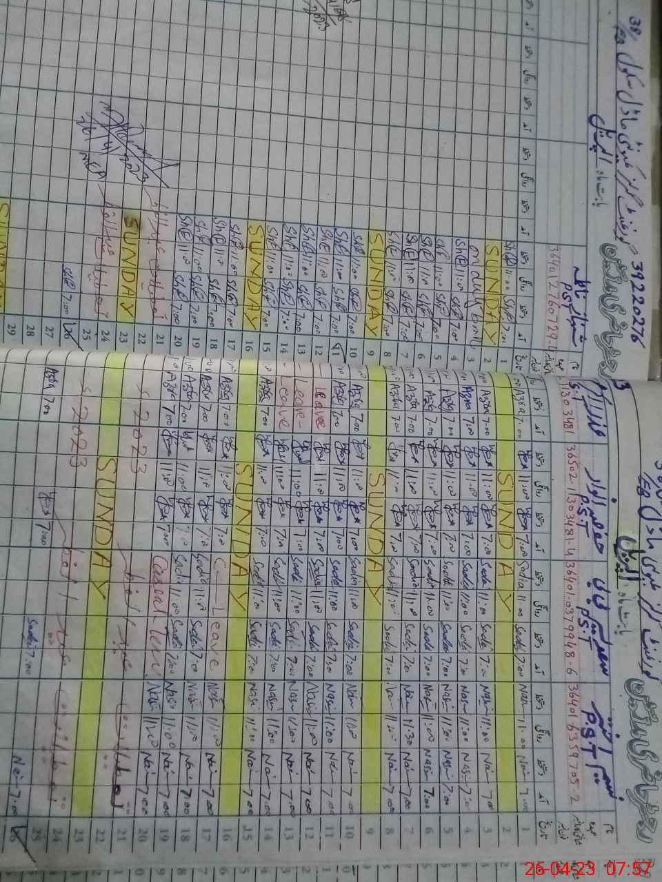 | Leave | Duty | Absent | Maternity | Medical | Ex- Pak |