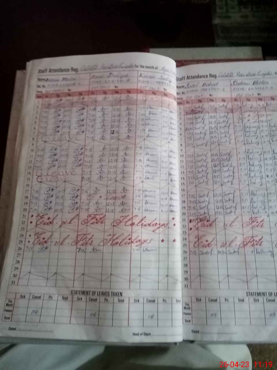 | Leave | Duty | Absent | Maternity | Medical | Ex- Pak |