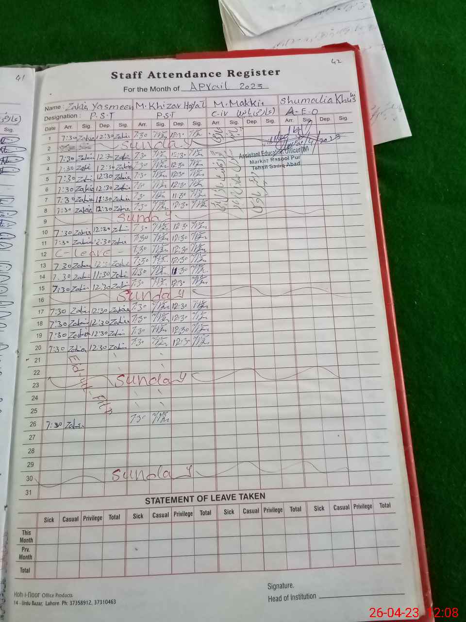 | 31**** | Mu**** Kh**** Ha**** | PST | Regular | 0 | 0 | 0 | 0 | 0 | 0 | 0 | 0 | 0 | Absent (Un-Authorized) |