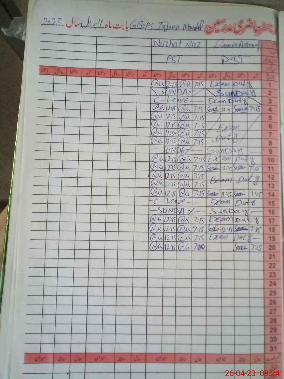 | 31**** | Sa**** As**** | Contract | 4 | 0 | 0 | 0 | 0 | 0 | 0 | 0 | 4 | Exam Duty | |