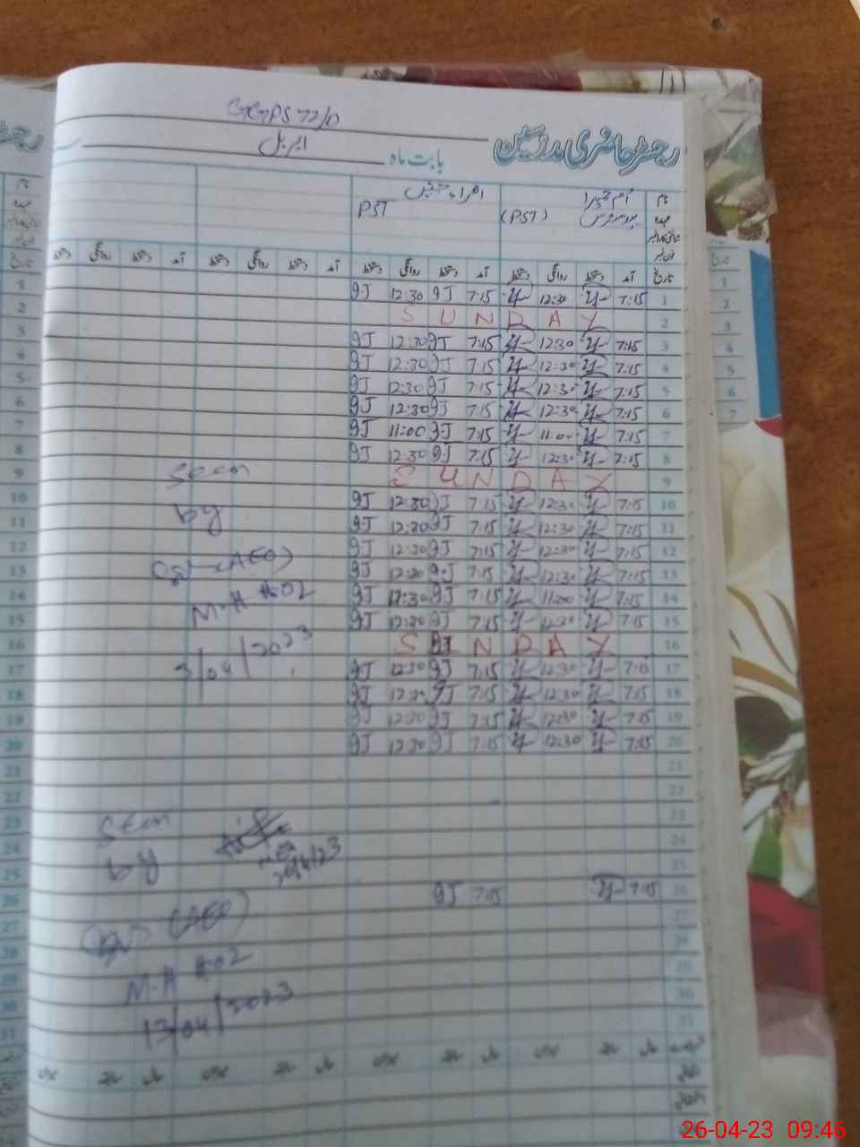 | CNIC | Full Name | Designation | R/C | Absence During Last Calender Month |