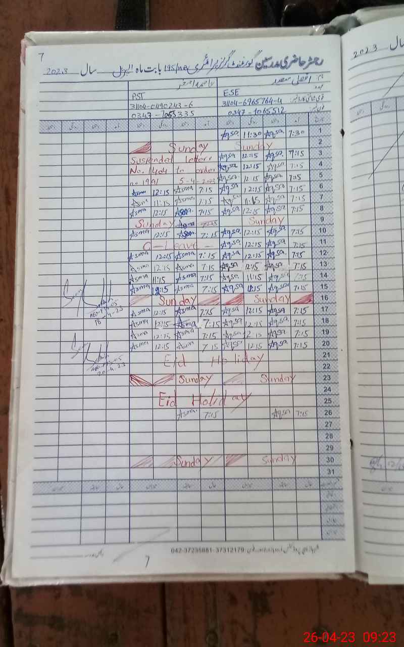 | Monitoring Date: 26-04-2023 | Start Time: 26-04-2023 09:07 AM | End Time: 26-04-2023 09:25 AM | Name of MEA: Mu**** ah**** BN**** 29 | |