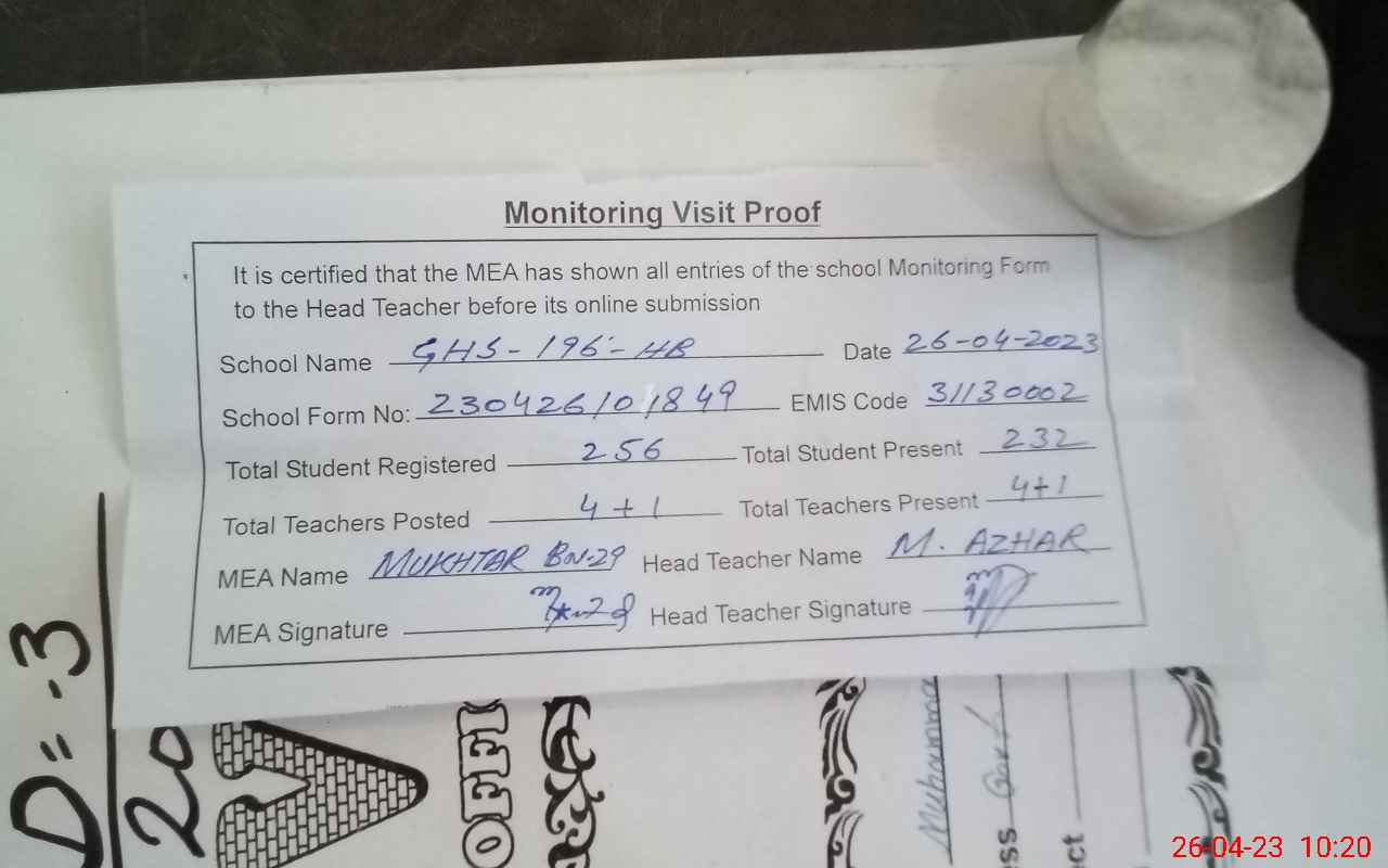 | EMIS Code: 31130002 | Name of School: GHS CHAK 196/HB | |||