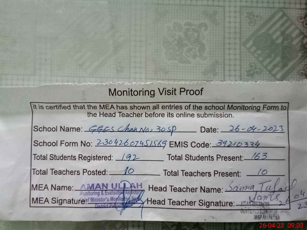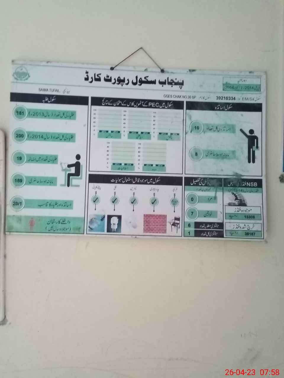 | EMIS Code: 39210334 | Name of School: GGES CHAK NO.30 SP | |||