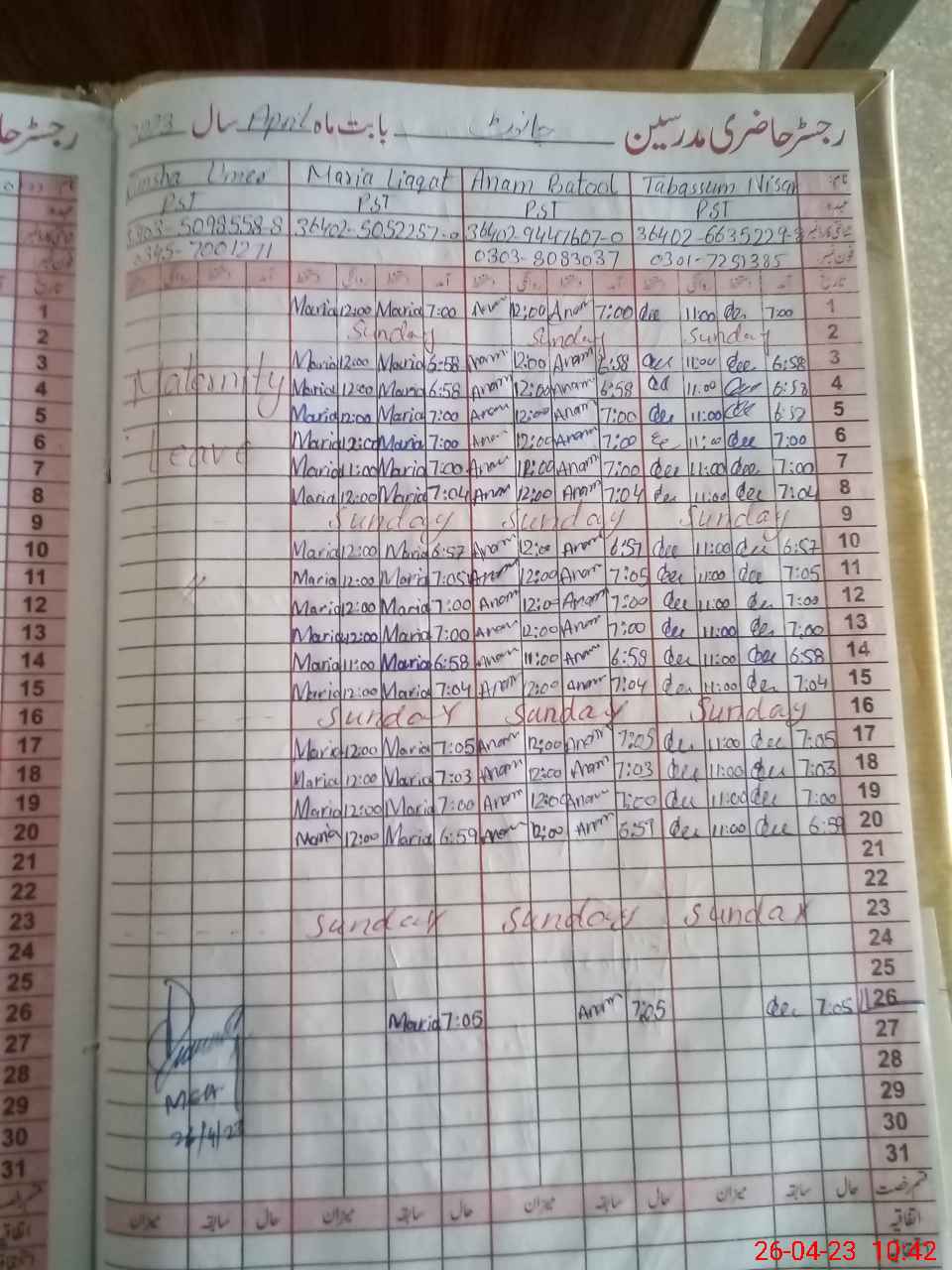 | 33**** | Ri**** Um**** | PST | Regular | 27 | 0 | 0 | 27 | 0 | 0 | 0 | 0 | 0 | Maternity |