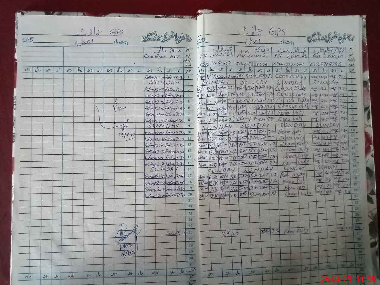 | 36**** | Ma**** Us**** Ma**** | PST | Regular | 0 | 31 | 0 | 0 | 0 | 0 | 0 | 0 | 0 | Exam Duty |
