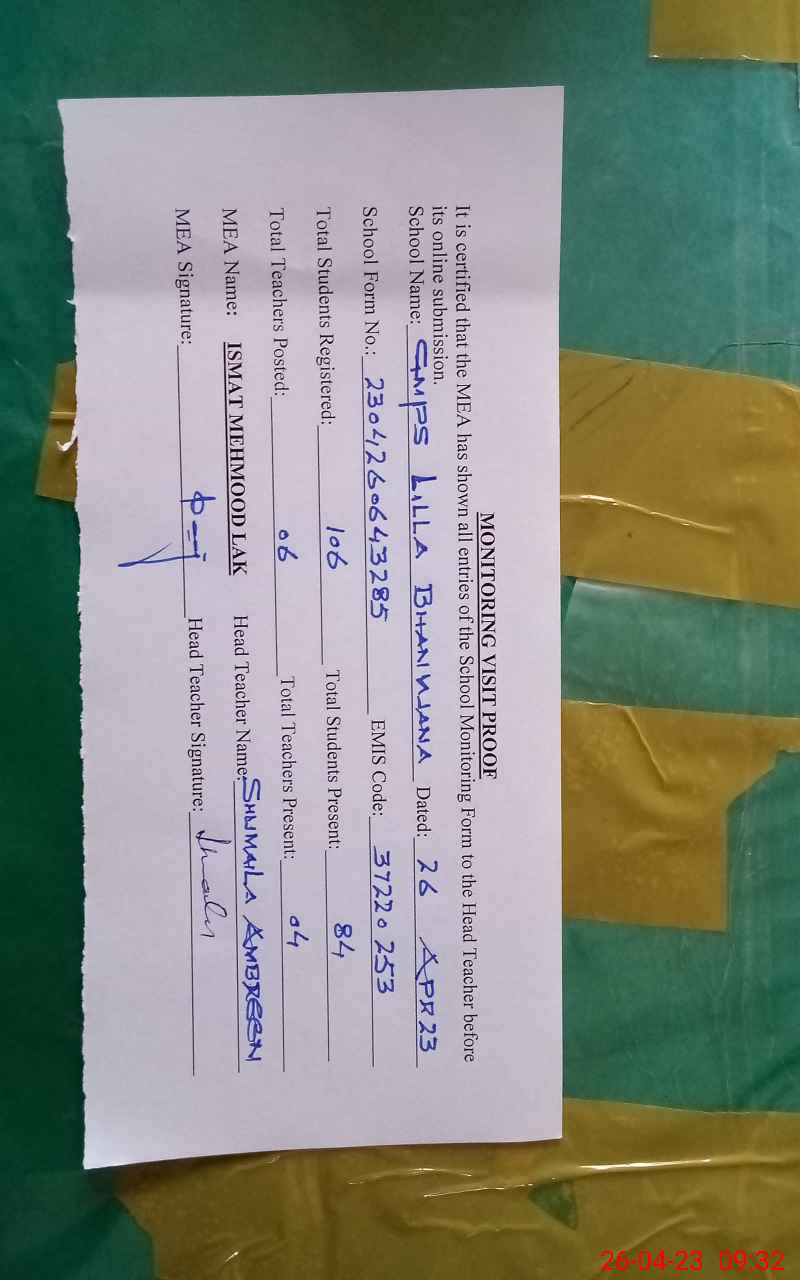 | EMIS Code: 37220253 | Name of School: GGMPS LILLA BHERWANA | |||