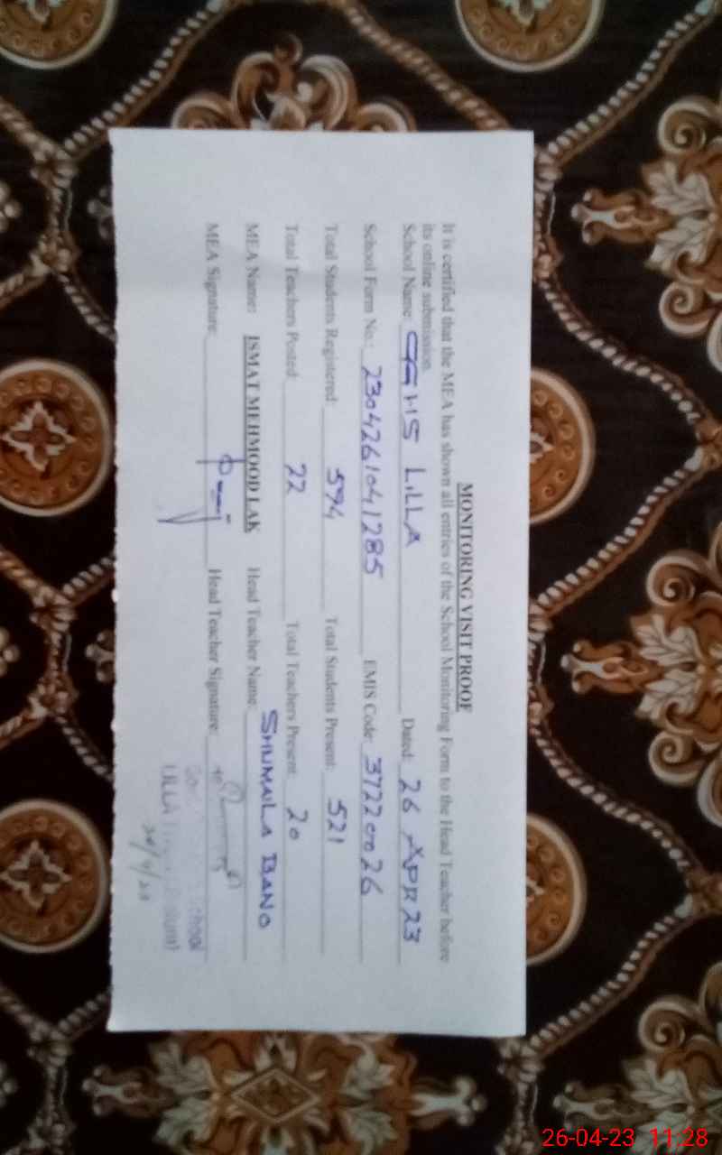 | Certified that this School was Inspected by the Undersigned MEA/DMO Today and the Information Stated Above is as Per Record. | |||||