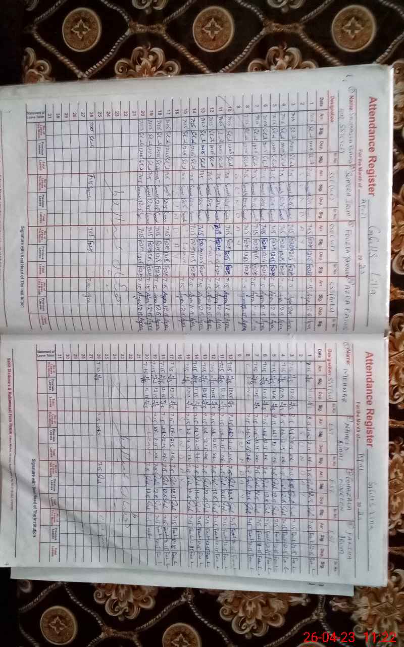 | CNIC | Full Name | Designation | R/C | Absence During Last Calender Month |