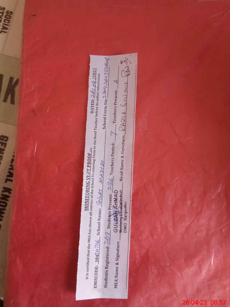 | EMIS Code: 38470726 | Name of School: GGES WAZIDI | |||