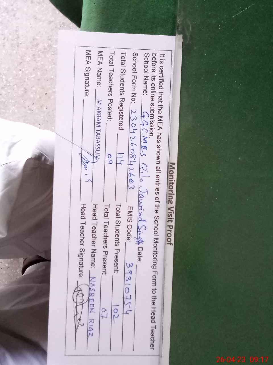 | EMIS Code: 39310754 | Name of School: GGCMES QILA JAWIND SINGH | |||