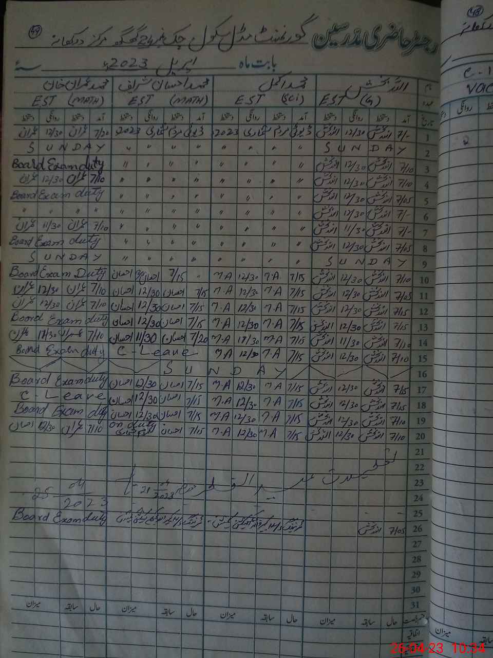 | 36**** | Mu**** Im**** Kh**** | EST | Regular | 0 | 0 | 0 | 0 | 0 | 0 | 0 | 0 | 0 | Exam Duty |