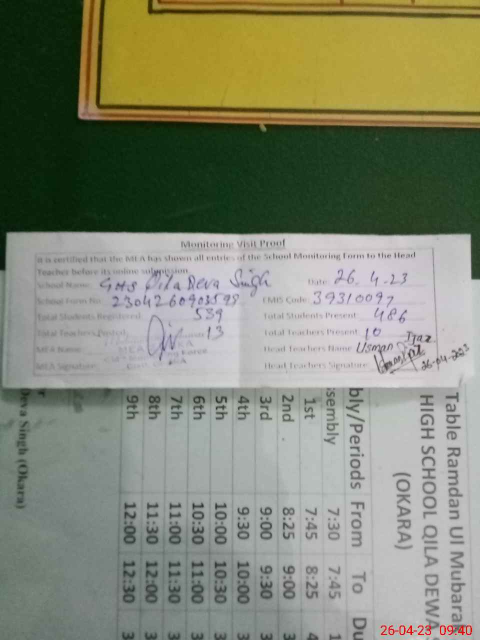 | Certified that this School was Inspected by the Undersigned MEA/DMO Today and the Information Stated Above is as Per Record. | |||||