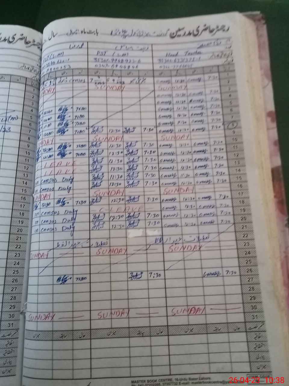 | CNIC | Full Name | Designation | R/C | Absence During Last Calender Month |